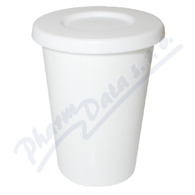 Plastový bílý kelímek s víčkem. Pomocný materiál určený pro lékárny - na masti, soli, pudry, prášky apod.