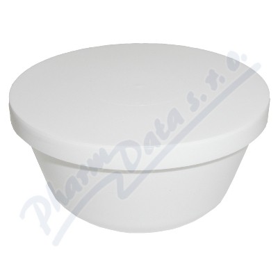 Plastový bílý kelímek s víčkem. Pomocný materiál určený pro lékárny - na masti, soli, pudry, prášky apod.