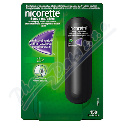 Orální sprej Nicorette pomáhá zbavit se závislosti na kouření. Sprej potlačí touhu po cigaretě již po 30 sekundách, při užití dvou dávek. Navíc je bez obsahu cukru. Sprej má příjemnou příchuť máty. Čtěte pozorně příbalový leták.