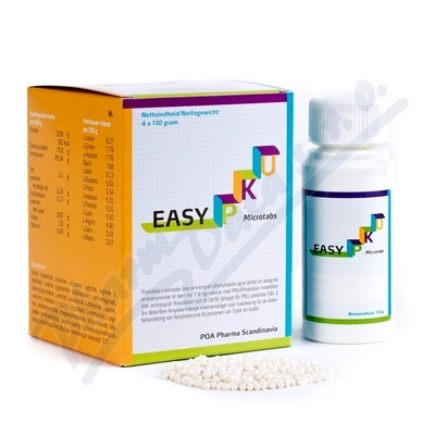 PKU EASY MICROTABS je nutričně nekompletní, dietní potravina na bázi čistých L-aminokyselin s výjimkou fenylalaninu určená k dietnímu režimu při fenylketonurii a hyperfenylalaninémii. Určeno pro zvláštní výživu. Čtěte pozorně příbalový leták.