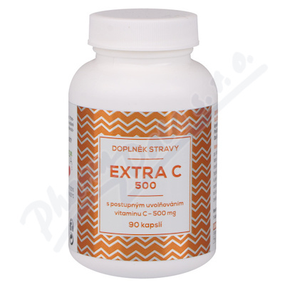Doplněk stravy - EXTRA C - s postupným uvolňováním po dobu minimálně 8 hodin. 1 kapsle obsahuje 500 mg vitamínu C. Výrobek neobsahuje cukr.