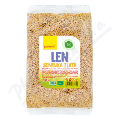 Lněné semínko zlaté BIO 500 g Wolfberry z kontrolovaného ekologického zemědělství, bez GMO. Vynikající zdroj nenasycených mastných kyselin, vitamínů, minerálů, lignanových fytonutrientů a vlákniny.