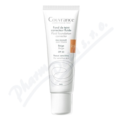 AVENE Couvrance Tekutý make-up (2.5). Krycí make up SPF 20. Béžový. Pro sametový vzhled. Pro citlivou pleť.