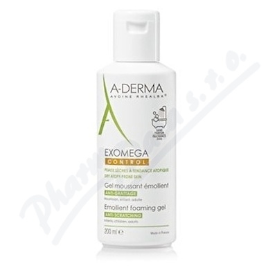 A-DERMA Exomega CONTROL Zvláčňující pěnivý gel 200 ml. Proti škrábání. Pro kojence, děti a dospělé. Bez mýdla. Bioodbouratelné složení.