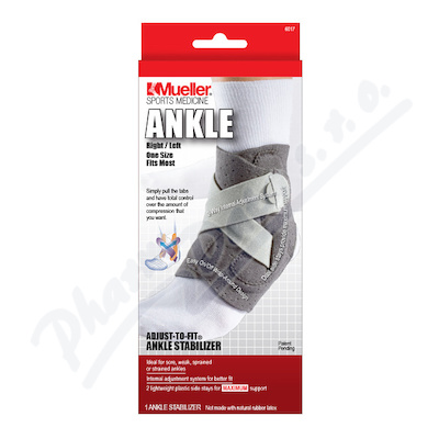 Produktová řada Mueller Adjust-To-Fit® pomáhá zabránit dalšímu zranění tím, že omezuje rozsah pohybu a urychluje tak zotavení. Patentované, nastavitelné vnitřní popruhy poskytují komfortní zpevnění kotníku a snadno se uchycují.