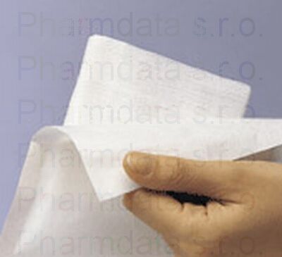 Gázová komprese, sterilní, 9x7,5 cm, VZP 80976. Je určena ke krytí ran, k přímému očištění a ošetření ran, k odsávání tekutin, k nanášení léčebných prostředků.