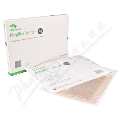 Mepilex Border Ag je samolepicí antimikrobiální krytí s vrstvou z měkkého silikonu. Je vyrobeno z měkké silikonové pěny, které absorbuje exsudát, udržuje vlhké prostředí rány podporující hojení a má antimikrobiální vlastnosti.