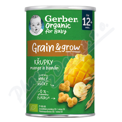 Gerber křupky s mangem a banánem 35 g. Kukuřično-ovesné BIO křupky s quinoou, mangem a banánem. Od ukončeného 12. měsíce.