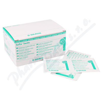 Tampóny na očistu kůže. K zevnímu použití. Jednotlivě balené čtverečky napuštěné alkoholem pro dezinfekci kůže před vpichem (70% isopropylalkohol).