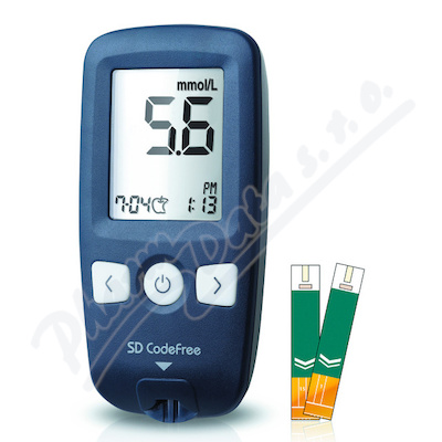 Kvalitní glukometr se samonasávacím senzorem pro bezpečné a rychlé použití. SET obsahuje: glukometr SD Codefree, testovací proužky 10ks, odběrové pero, jehličky, kontrolní proužek.