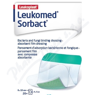 Leukomed Sorbact je pooperační antimikrobiální krytí s polštářkem a voděodolným transparetním filmem pro ošetření mírně až středně secernujících primárních či sekundárních ran, např. drobných poranění, abrasí, vhodné pro prevenci infekce.