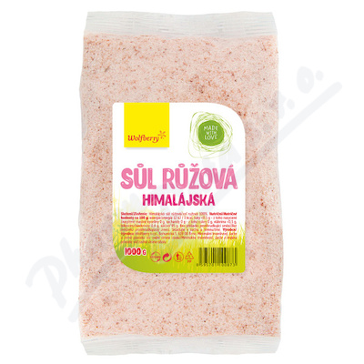 Himalájská sůl růžová 1000 g Wolfberry. Nerafinovaná přírodní krystalická sůl s obsahem 84 stopových prvků. Bez umělých anorganických aditiv, chemického fluoru a jódu.