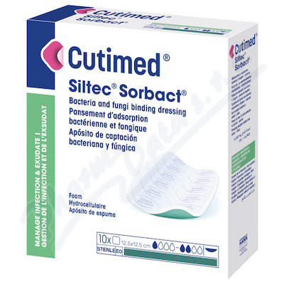 Cutimed Siltec Sorbact B je určen ke krytí ran s cílem navázat a odstranit baktérie a další mikroorganismy ze znečištěných, kontaminovaných a infikovaných ran s exsudátem. Pro dokonalou kontrolu rány je systém Sorbact kombinován s polyuretanovou pěnou.