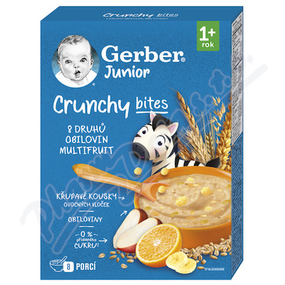 Gerber Junior nemléčná kaše ovocná s křupavými kousky je lahodnou kombinací 8 druhů obilovin doplněných o ovocné vločky, křupavé kousky obilovin, řadu vitamínů a minerální látky. Bez přidaného cukru. Kaše je určena pro děti od ukončeného 1. roku.