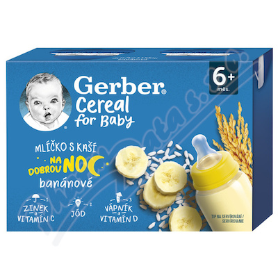 Gerber Cereal Ml.s kaší dob.noc banán.2x200ml 6m+