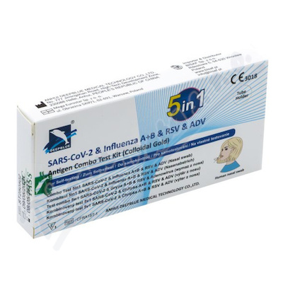 Antigenní test pro domácí použití na pět respiračních patogenů (SARS-CoV-2, chřipku A a B, RSV a adenovirus) z jednoho výtěru z nosu. Výsledek do 10 minut bez nutnosti laboratorního vybavení. Určeno pro domácí použití (samotestování).