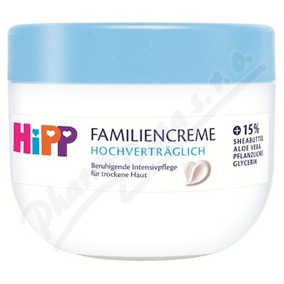 HiPP Krém pro celou rodinu vyvinut s ohledem na maximální péčí pro citlivou pokožku. Bez parfemace, éterických olejů a barviv, hypoalergenní složení minimalizuje riziko podráždění. Dermatologicky testováno a vhodné i při sklonu k atopické dermatitidě.