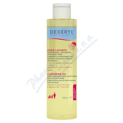 DEXERYL je relipidační, zklidňující, mycí gel proti škrábání. Bez parfemace. Vhodný od narození. Zamezuje svědění související se suchostí kůže. Určený pro velmi suchou kůži nebo kůži se sklonem k atopii.