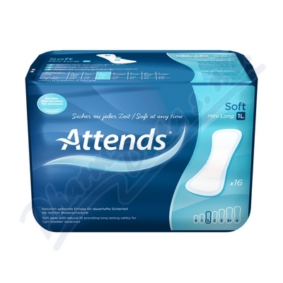 Ochranná pomůcka pro lehký stupeň úniku moči z měkké netkané textílie. Vložky Attends Soft mají bezpečné, velmi účinné savé jádro, díky kterému se vlhkost rychle vstřebává a je odvedena z povrchu dovnitř savého jádra, kde se uzamkne.
