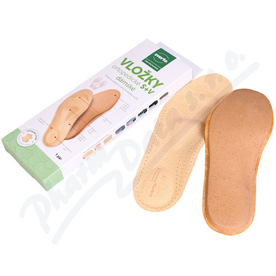Vložka podepírá podélnou a příčnou klenbu nožní. Podprstová řasa v přední části a měkký polštářek v patě zvyšují komfort chůze.