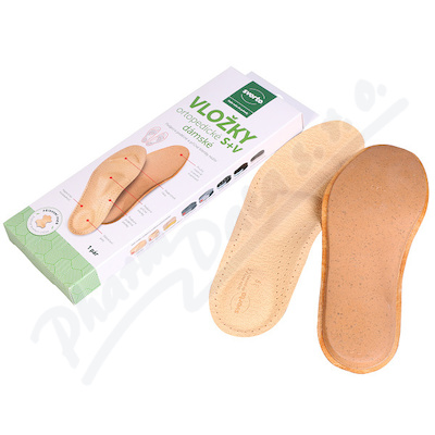 Vložka podepírá podélnou a příčnou klenbu nožní. Podprstová řasa v přední části a měkký polštářek v patě zvyšují komfort chůze.