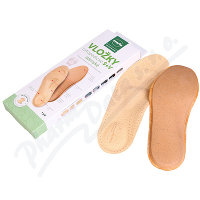 Vložka podepírá podélnou a příčnou klenbu nožní. Podprstová řasa v přední části a měkký polštářek v patě zvyšují komfort chůze.