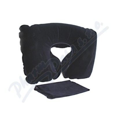 Cestovní nafukovací podhlavník. Praktická podpora pro příjemnější cestování autobusem, vlakem nebo autem.